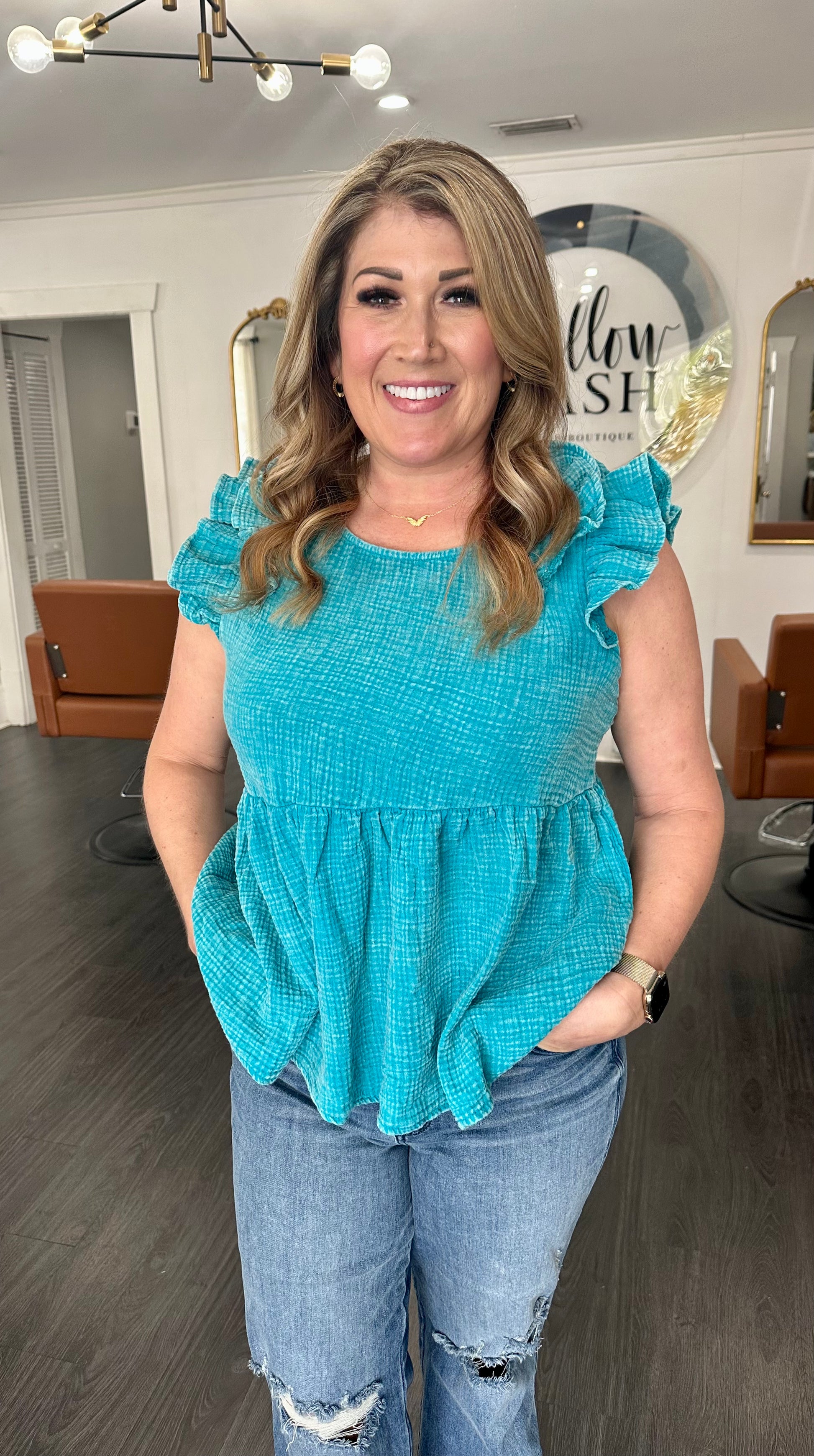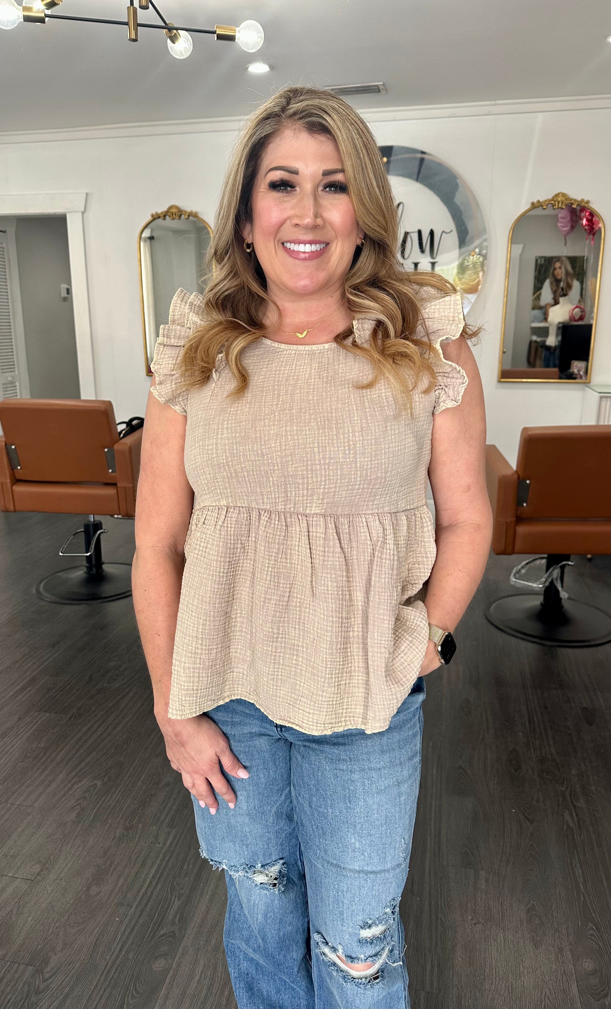Bring some whimsy to your wardrobe with our Butterfly Top. Made of soft 100% cotton, this top features tiered ruffle sleeves and a washed double gauze fabric. Perfect for a playful and lighthearted style. (Double the ruffles, double the fun!)