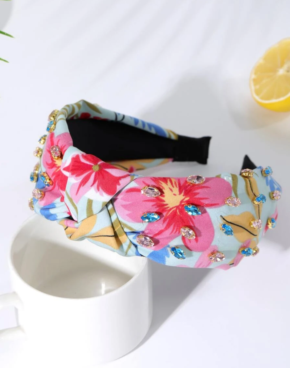 Add the perfect finishing touch to your outfit with this trendy headband! Wrapped with pearls and crystals, this accessory will have you feeling sparkly and special. It's the perfect way to spice up any look.