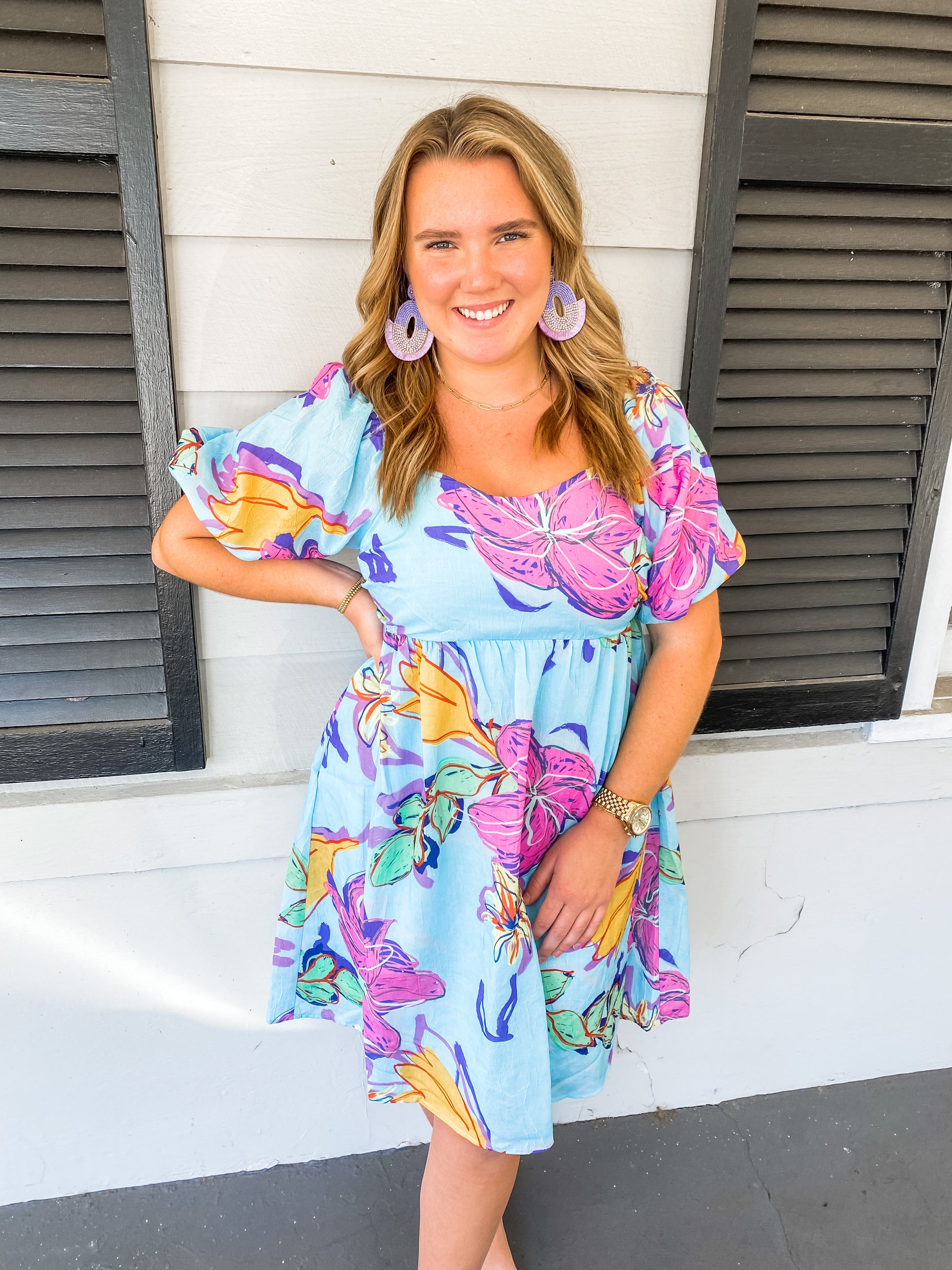 Elevate your wardrobe with this lightweight floral printed babydoll dress. It features a sweetheart neckline, smocked back, and short puff sleeves for a feminine look. Perfect for day-to-night styling, this dress will make an impression at any occasion.