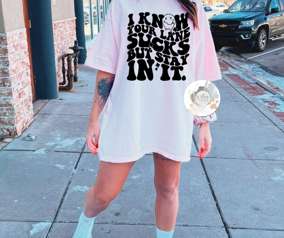 Bust out of the ordinary with this sassy yet comfortable tee! Perfect for lazy days, Stay In Your Lane will get you through the day in comfort and style. Crafted with Comfort Colors' premium brand, this tee is sure to make a bold statement - so they can stay in your lane!